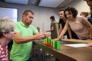 Účastníci plánují, testují, propojují a zkouší různé varianty, dokud se nepodaří stroj úspěšně spustit – moment, kdy všechno funguje, přináší euforii i pocit sounáležitosti.